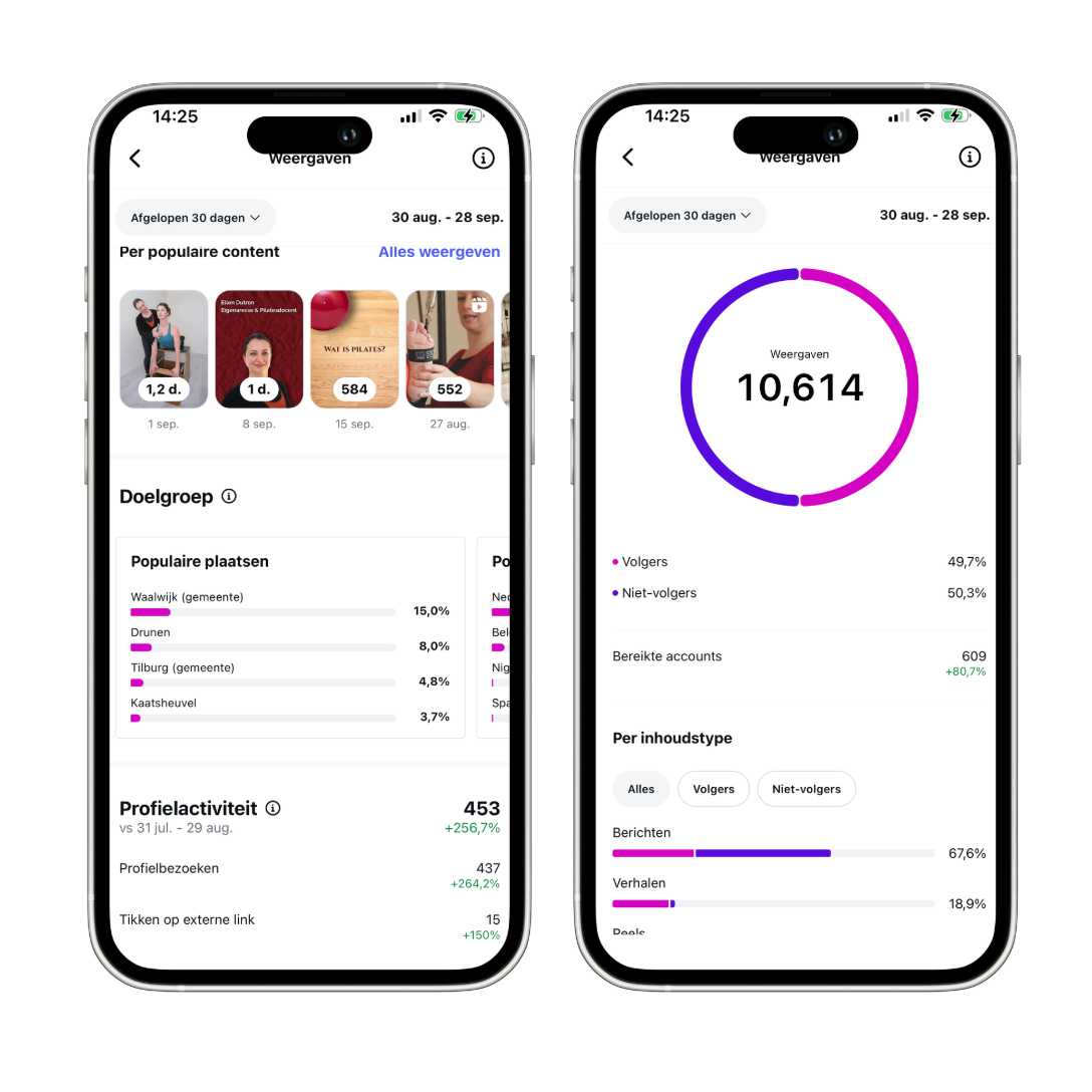 ▪️ Bereik: 609 unieke accounts (+80,7%), waarvan 50,3% niet-volgers → nieuwe doelgroep bereikt.