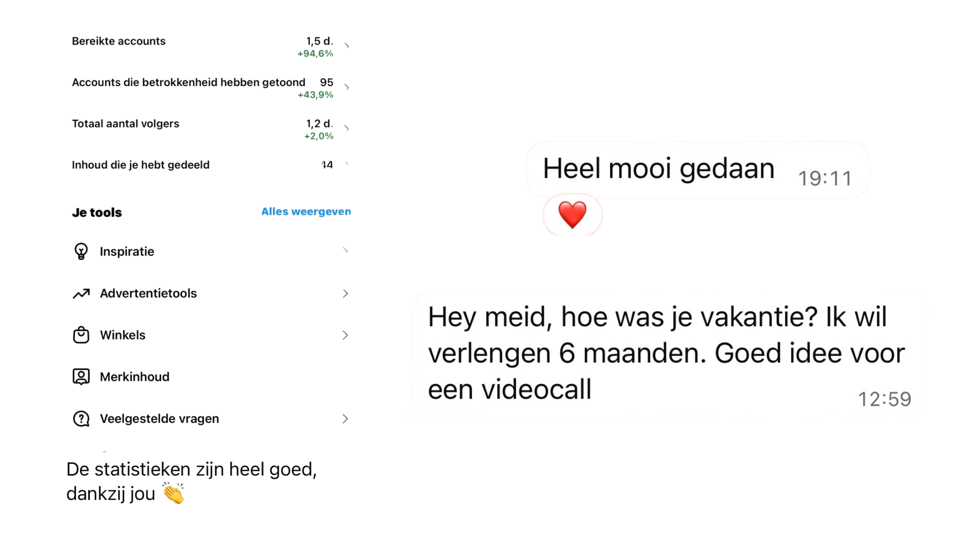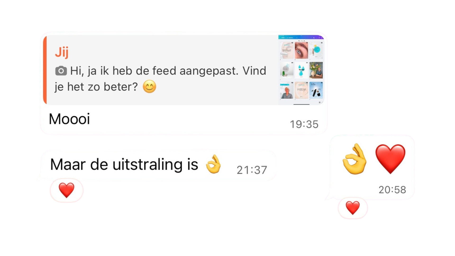 Ze koos voor mij omdat ik zowel de beauty-branche begrijp als strategie kan toepassen. Maria kreeg in de DM veel complimenten van anderen over haar feed. Dankzij de nieuwe uitstraling en strategie heeft Maria nu 600+ nieuwe geïnteresseerde volgers erbij gekregen.