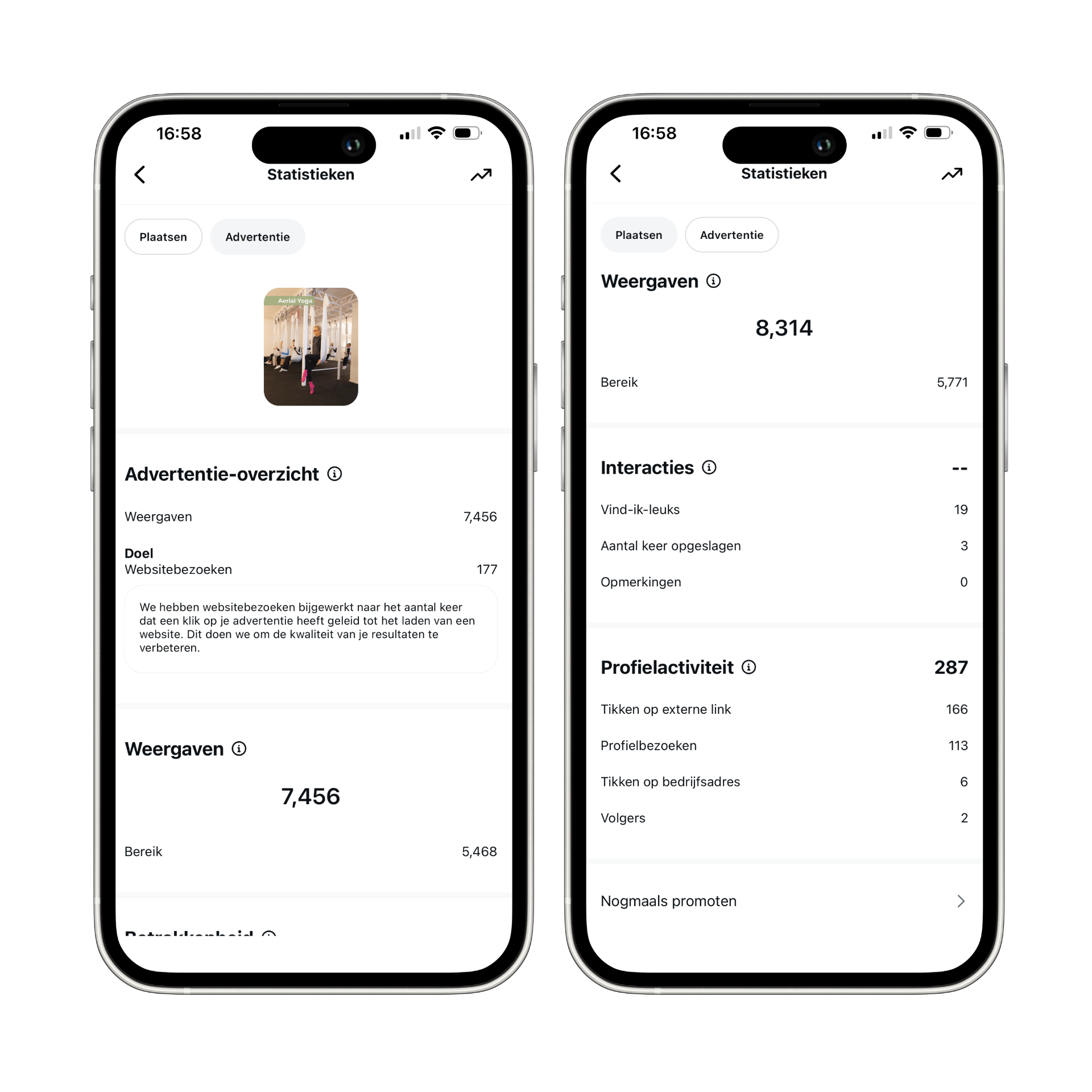 ▪️Instagram volgers gegroeid naar 1.710 (+600 geïnteresseerde volgers in 13 maanden met organisch social media beheer, +54%).